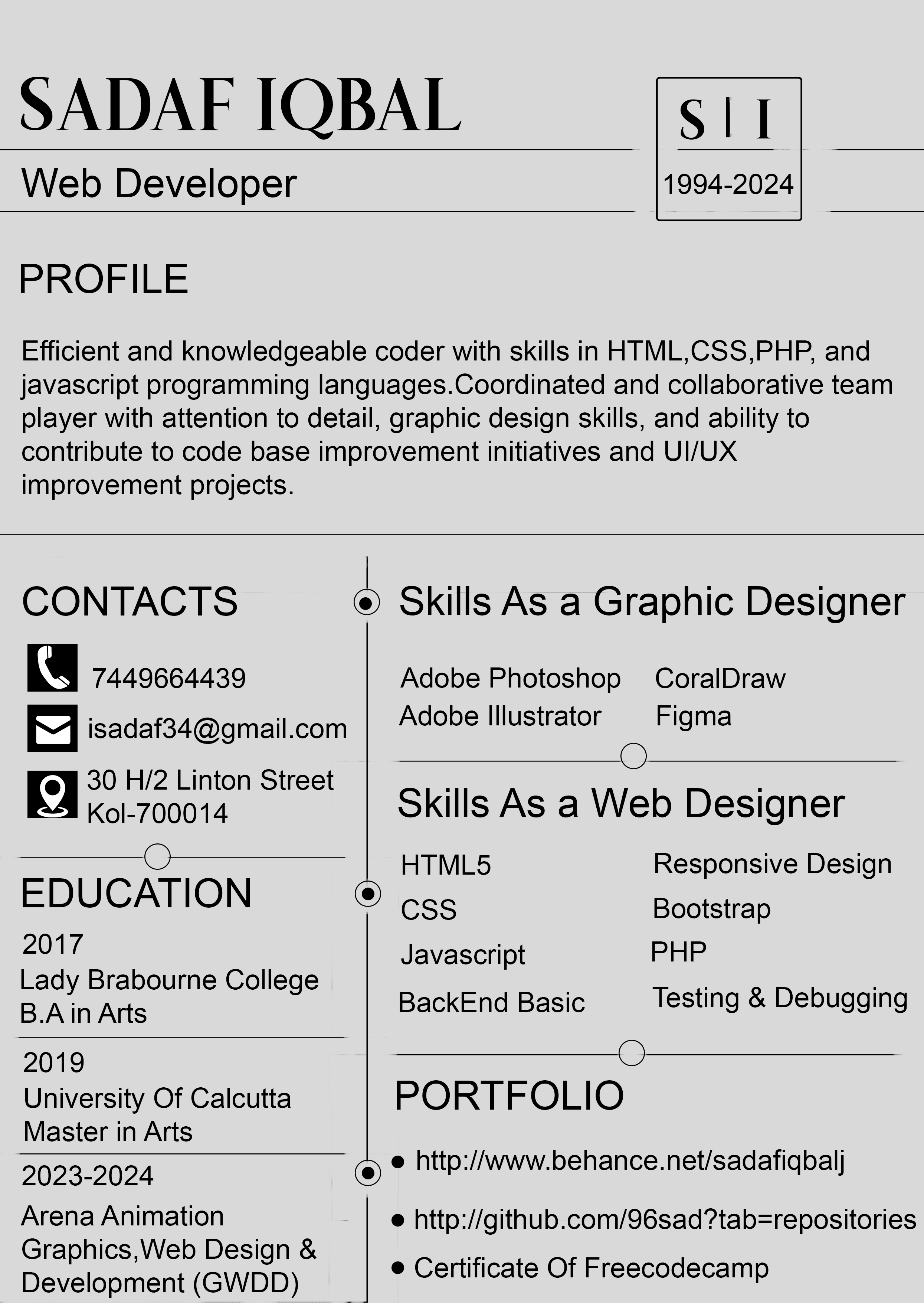 I Began My Development Journey In 2023, Focusing On Design, UX/UI In Graphic Designing And Web Devlopment. From 2024, I Expanded My Skills Into Programming Languages Like HTML, CSS, JavaScript, Bootstrap, Basic Understanding On PHP, Responsive_design. To Deepen My Understanding, I Completed Web Development Courses From Reputable Institute Like Arena Animation And Other Online Platforms.